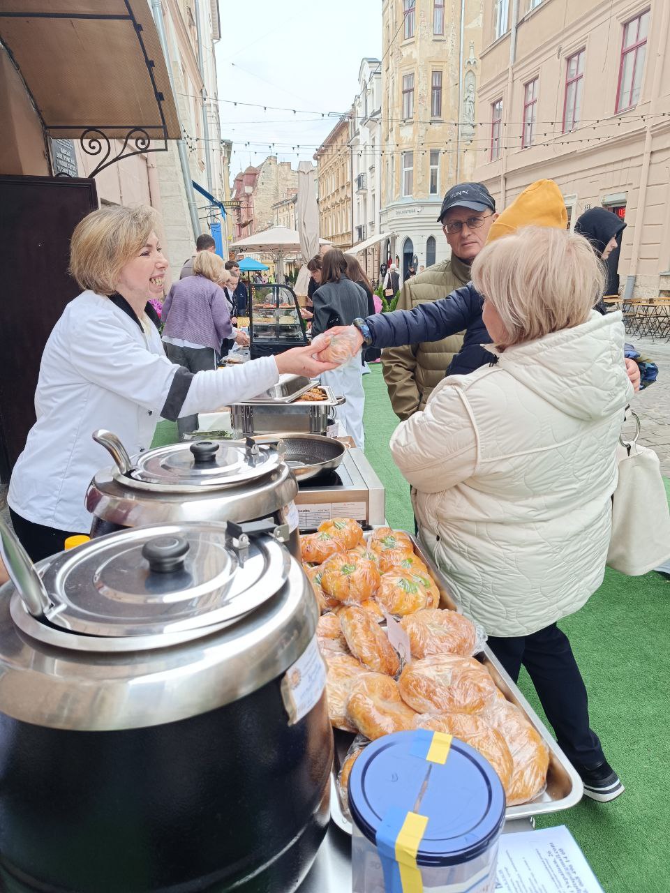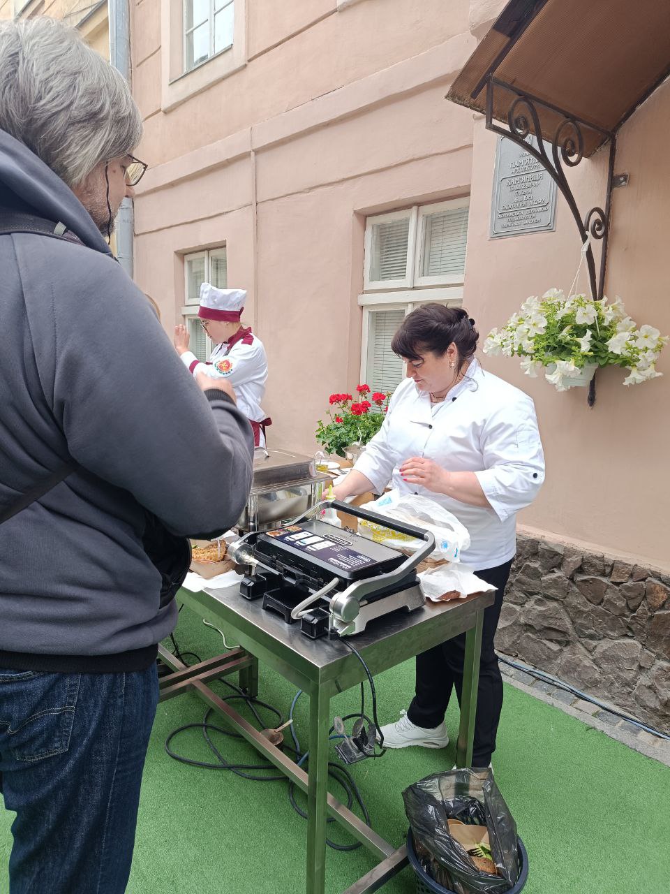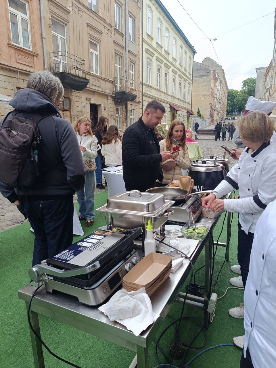 Незважаючи на прохолоду погоду у неділю (25.05.25р.) на вул. Лесі Українки.26 було тепло і гамірно. В День кельнера студенти та майстри виробничого навчання Львівського професійного коледжу ресторанного бізнесу частували всіх охочих гарячими стравами та кондитерськими смаколиками.