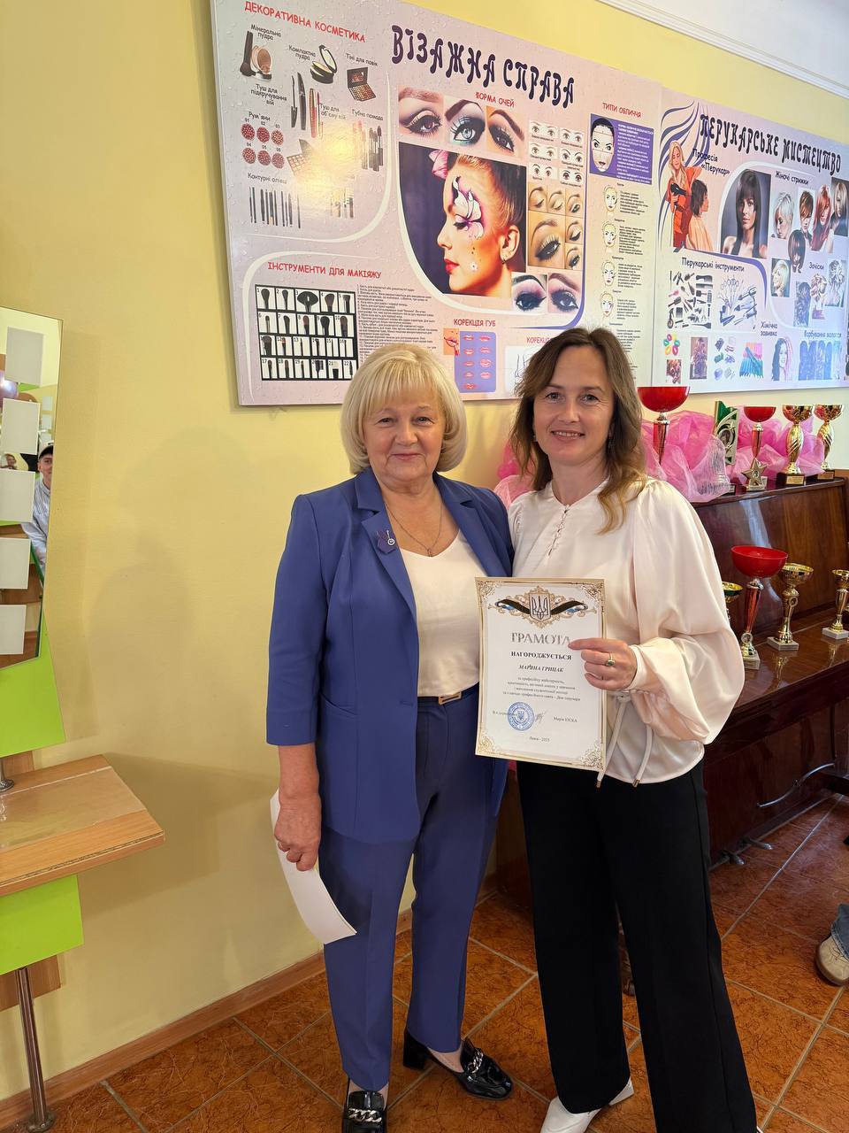 На творчу зустріч завітала МАР'ЯНА ВОЙТОВИЧ, випускниця закладу,майстриня-перукар вищої категорії. Вона ознайомила присутніх з новинками у перукарському мистецтві та продемонструвала майстер-клас.