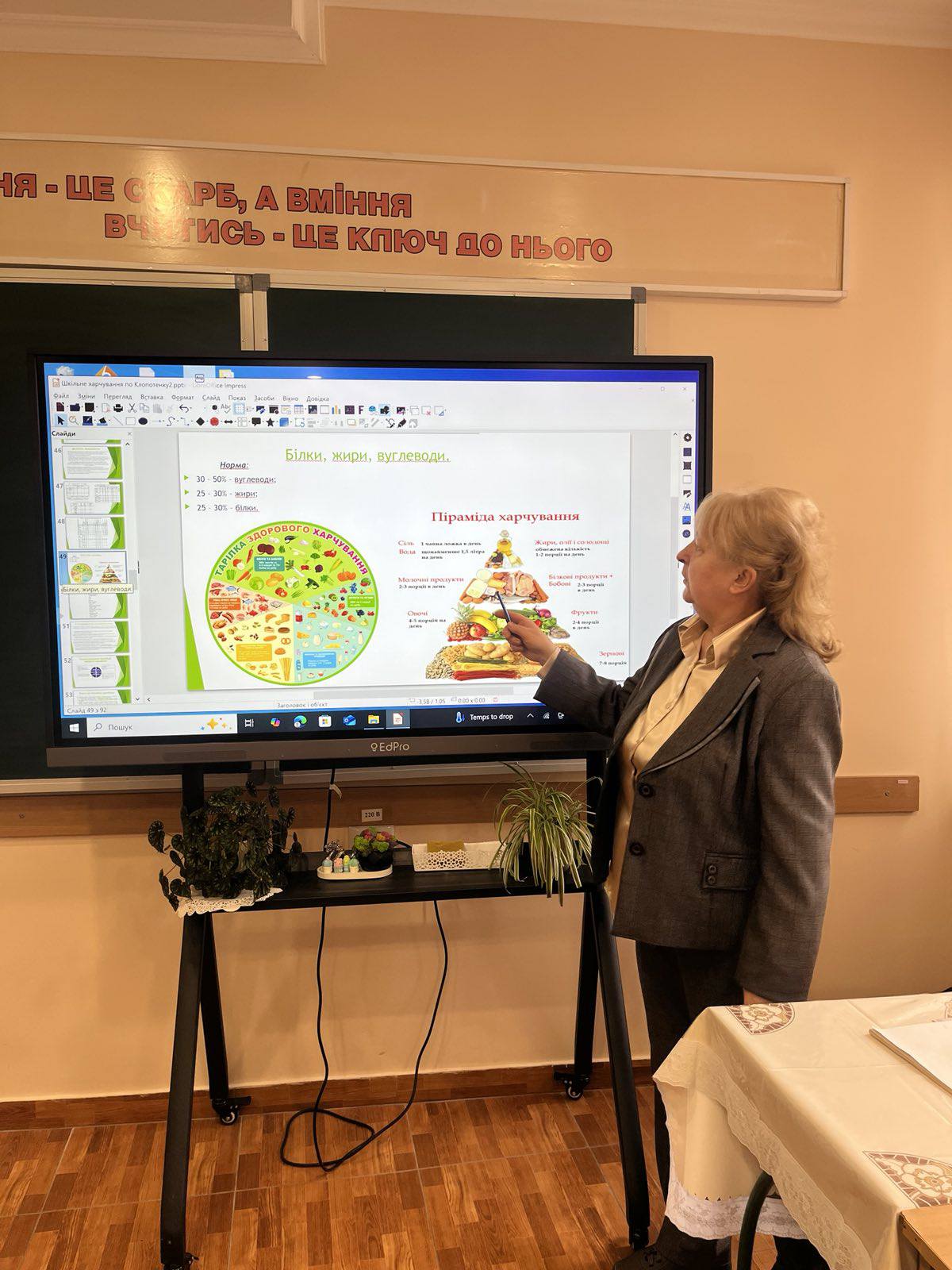 У Всесвітній день здорового харчування, Ольга Бардин, куратор групи, майстриня виробничого навчання провела інформаційно-просвітницьку бесіду з спільнотою студентів коледжу на тему: "Що на твоїй тарілці-- користь чи шкода?".