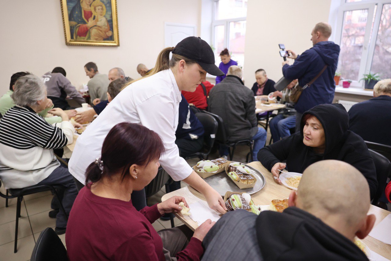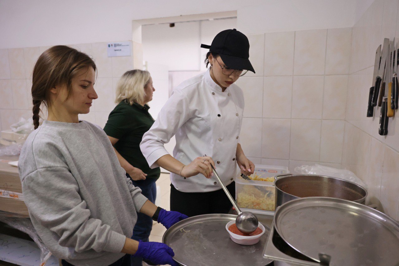У прихистку на Кирилівській, 3А студенти та викладачі чотирьох львівських закладів професійної освіти поділилися тим, що вміють найкраще: приготували борщ із пампушками, плов з м’ясом, пряники та інші десерти — загалом 50–60 порцій.