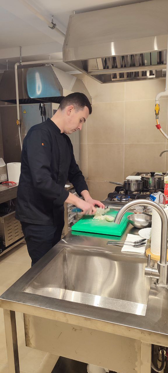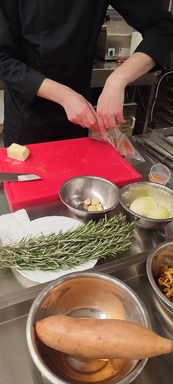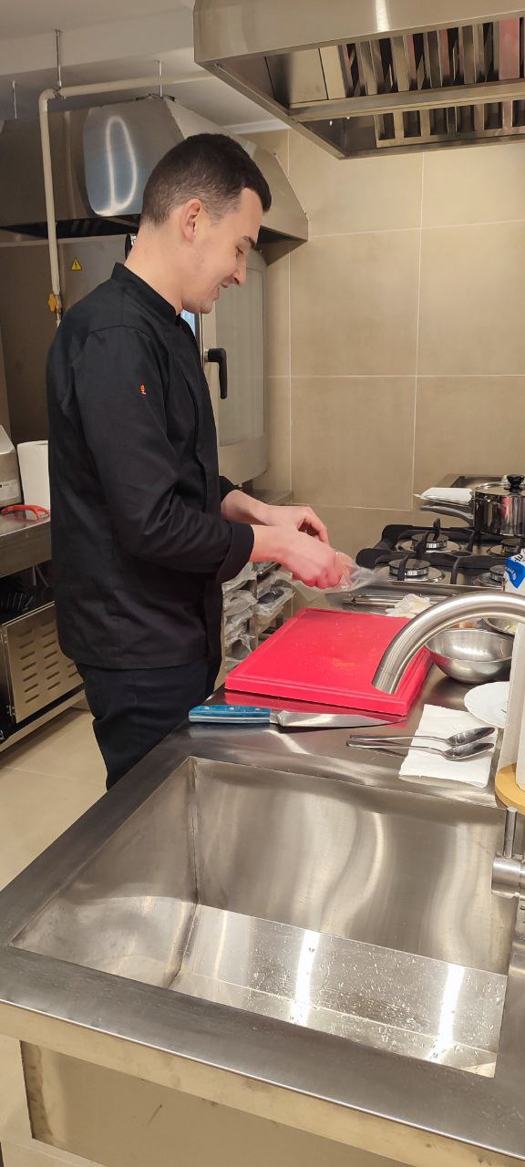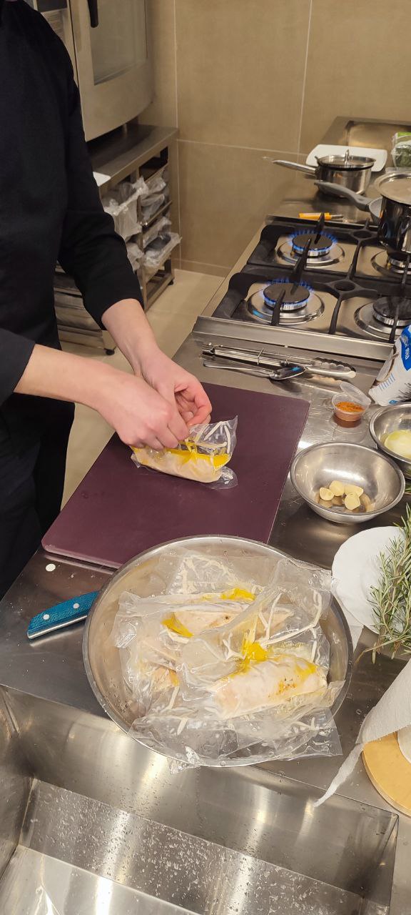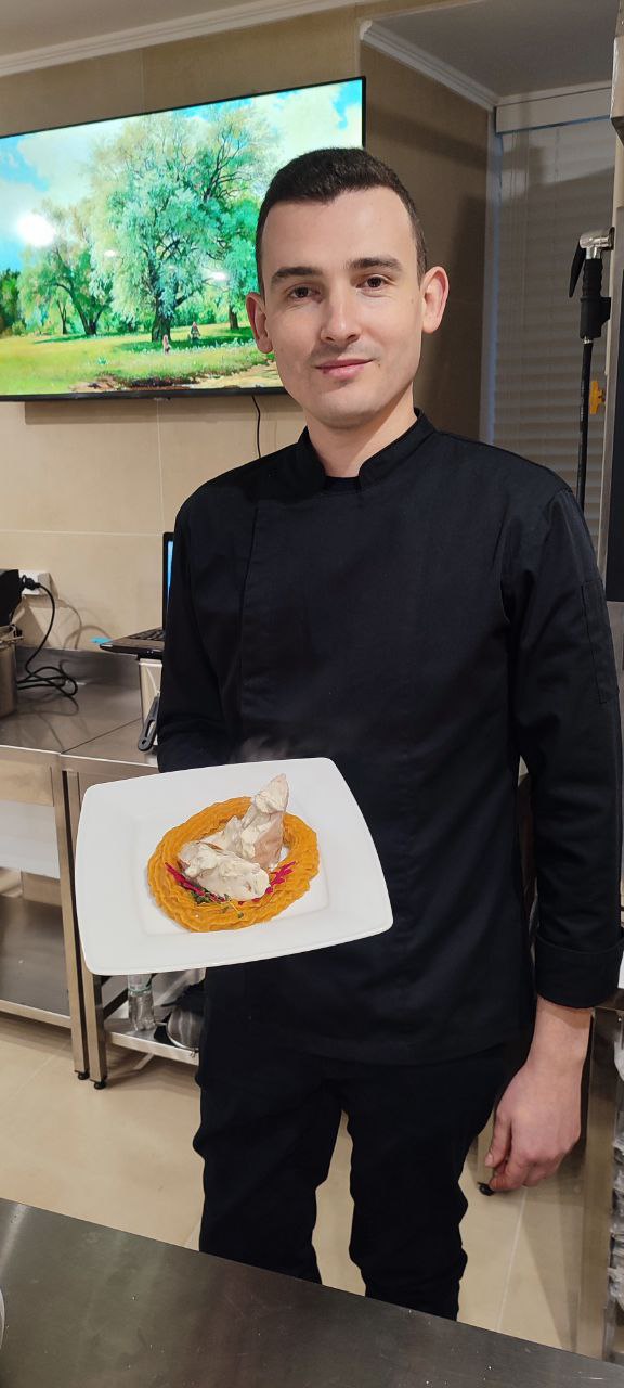 Лука Андрій, майстер виробничого навчання, продемонстрував майстер клас "Індичка су-від під соусом з лисичок із пюре батату".