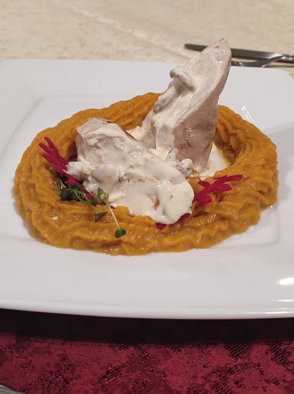 "Індичка су-від під соусом з лисичок із пюре батату"