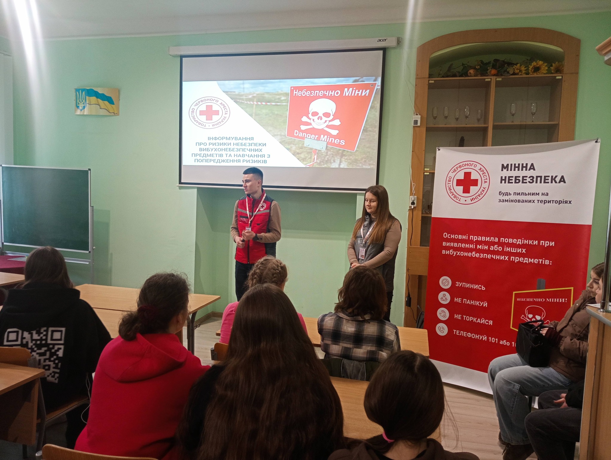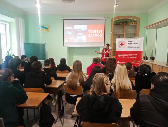 Лілія та Юрій, фахівці Українського Червоного Хреста у Львівській області провели зустріч з студентською спільнотою коледжу. Інформували про ризики вибухонебезпечних предметів та наголошували про правила поведінки у разі обстрілу. Всі разом зробили висновок:"Небезпека може бути не помітною, а її наслідки- незворотні".