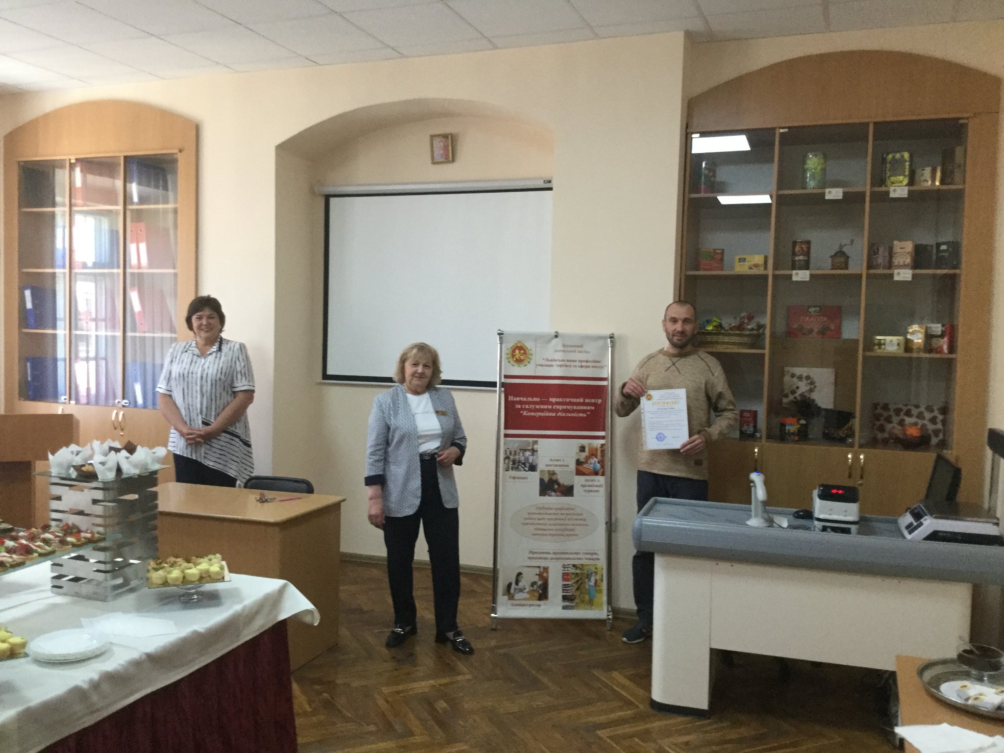 На базі Навчально-практичного центру за галузевим спрямуванням "Комерційна діяльність" у ДНЗ "Львівське вище професійне училище торгівлі та сфери послуг" в період з 27.04.2022 р. по 11.05.2022р., проводилось навчання (з отриманням часткових кваліфікацій) для внутрішньо переміщених осіб за професією "Продавець продовольчих та непродовольчих товарів, касир торговельного залу".