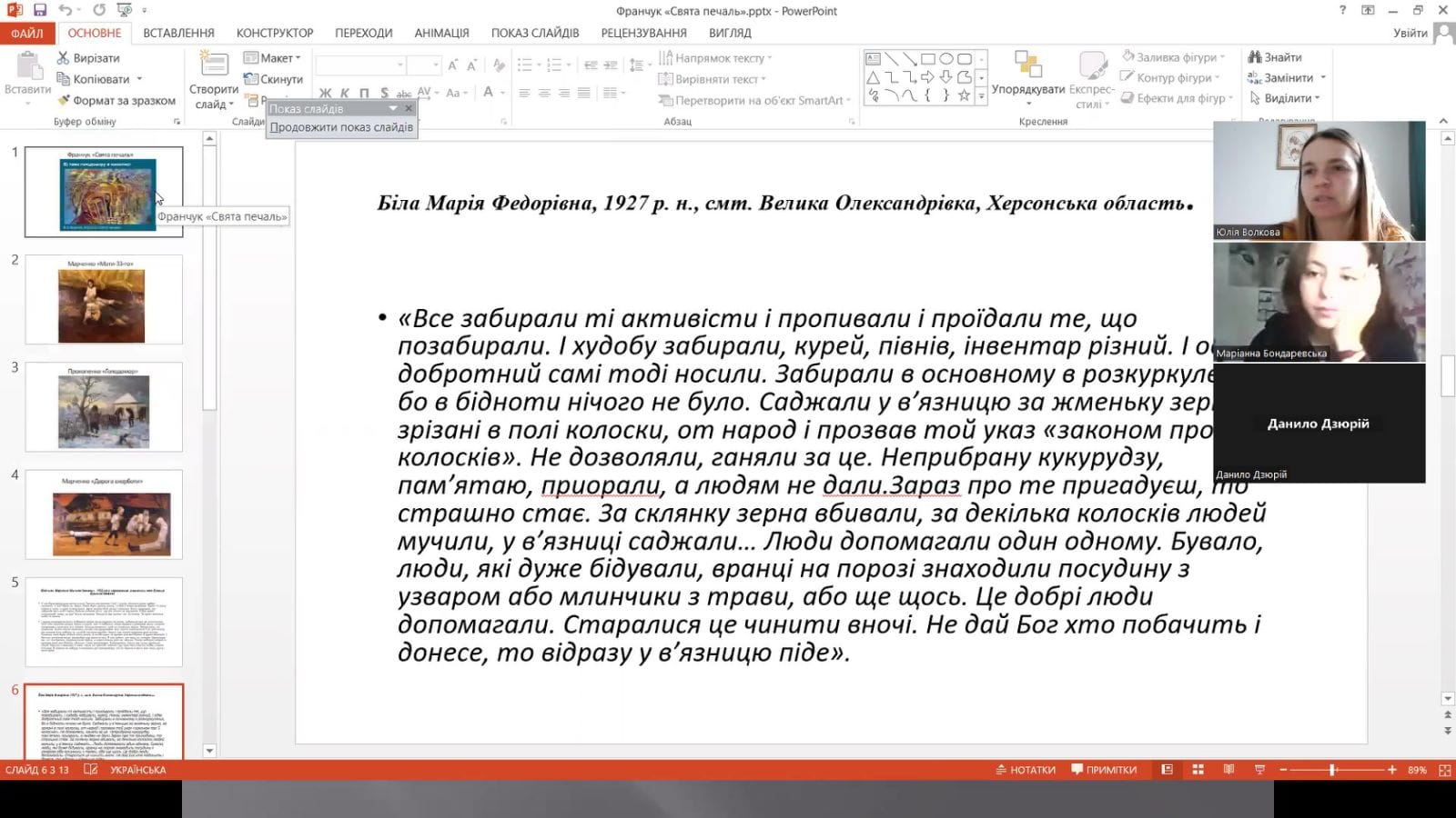 «... Історія нас горем вчить, щоб не забулось незабутнє, бо там, де пам'ять не мовчить, там щастям повниться майбутнє».