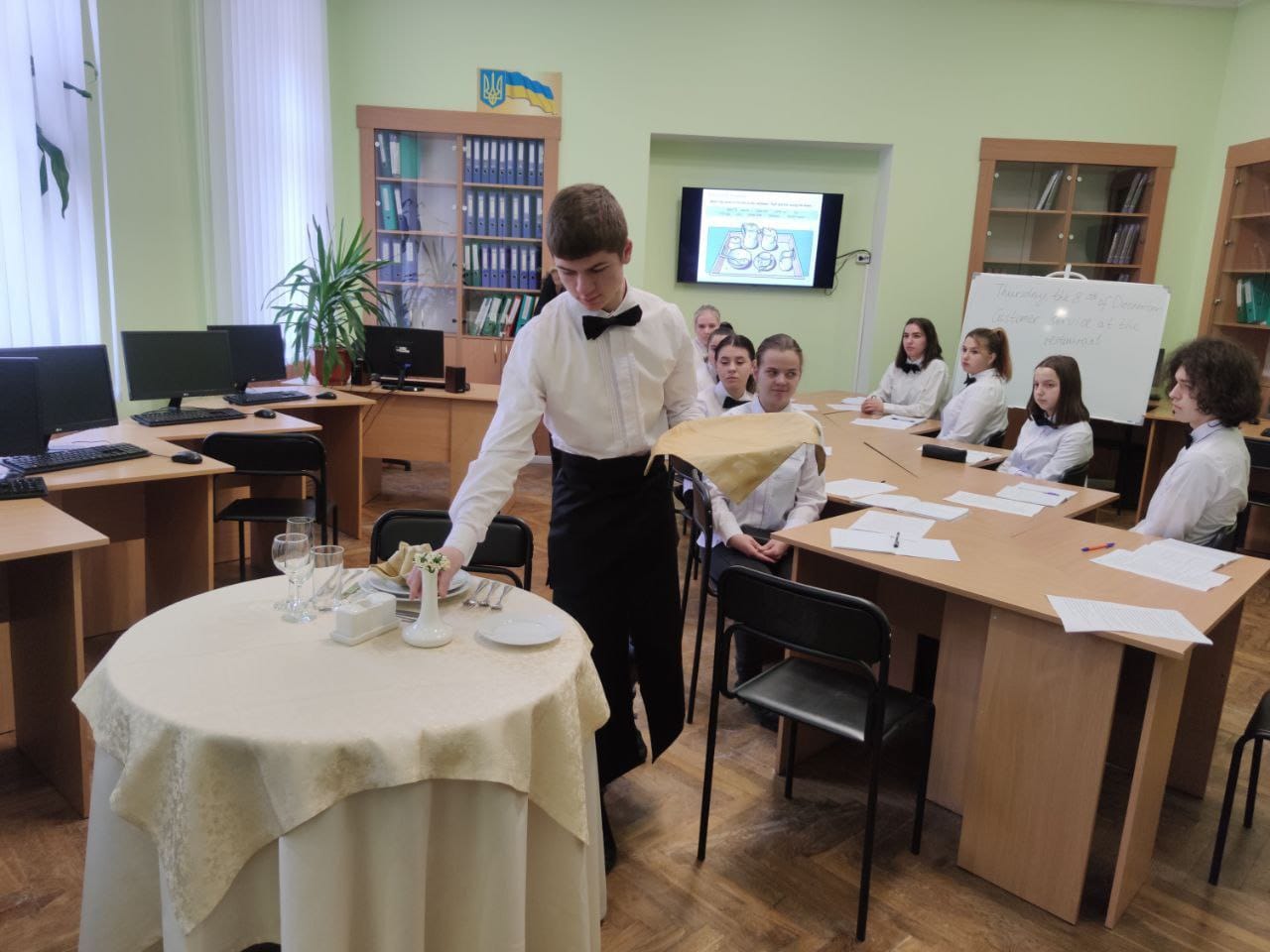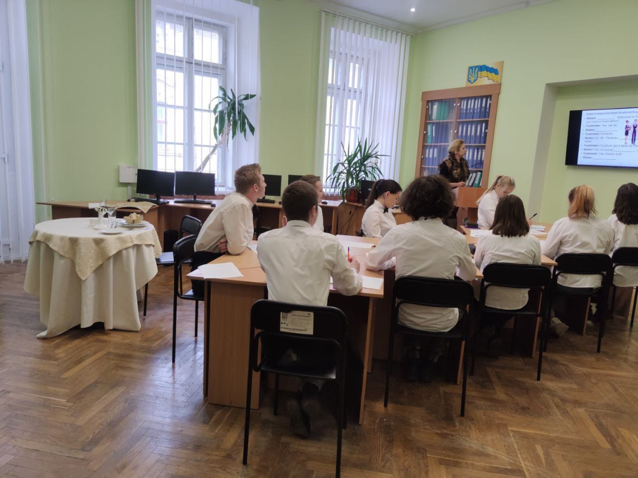 8 грудня у ДНЗ «Львівське вище професійне училище торгівлі та сфери послуг» було проведено урок узагальнення з предмета «Англійська мова за професійним спрямуванням» на тему: «Customer service at the restaurant» (Обслуговування відвідувачів у ресторані).