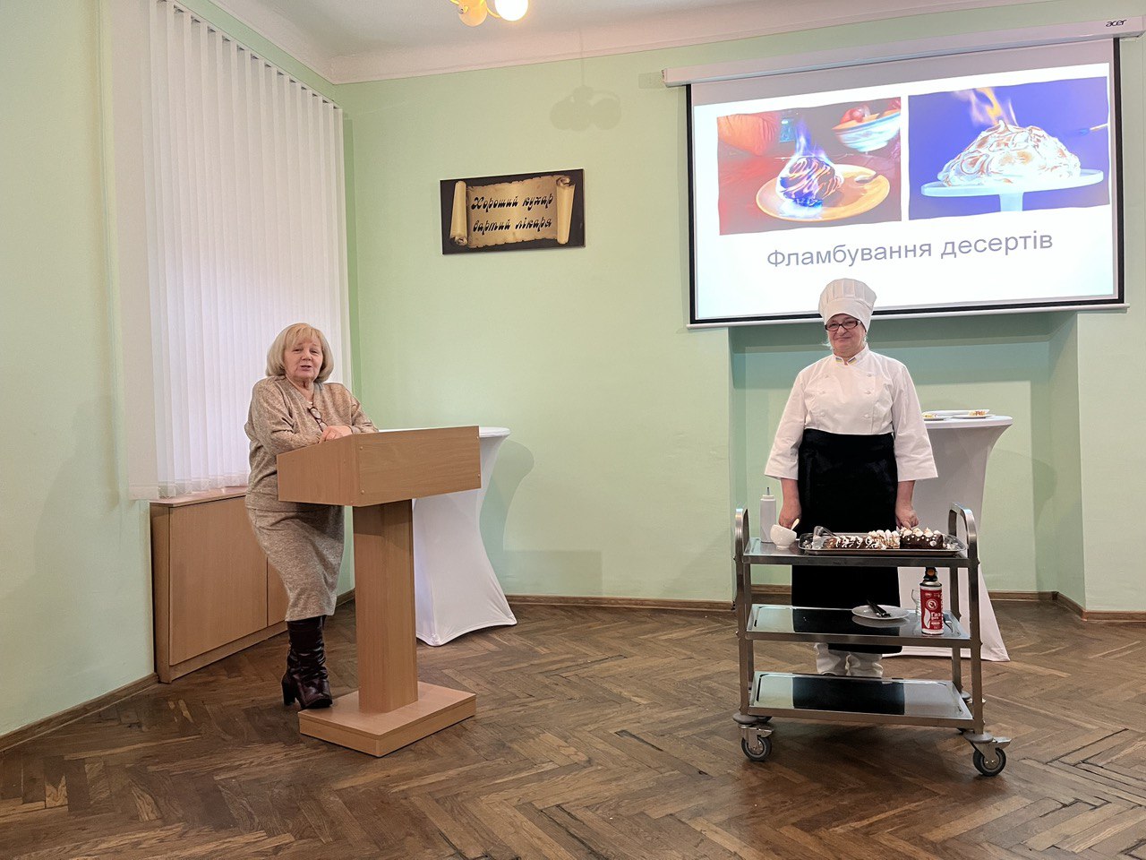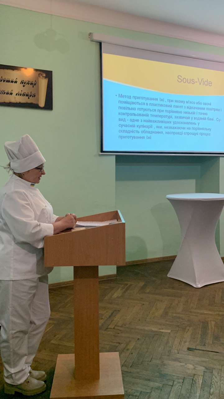 Майстер виробничого навчання Галина Січиокно продемонструвала новітні способи приготування кулінарної продукції, зокрема: sous vide, папільйот, фламбування, вок, тандир, хоспер, ферментація, термомікс, фудпейрінг, 3-D друк, деглясування, сублімація, пакоджетінг, інтенсивне охолодження й шокове замороження.