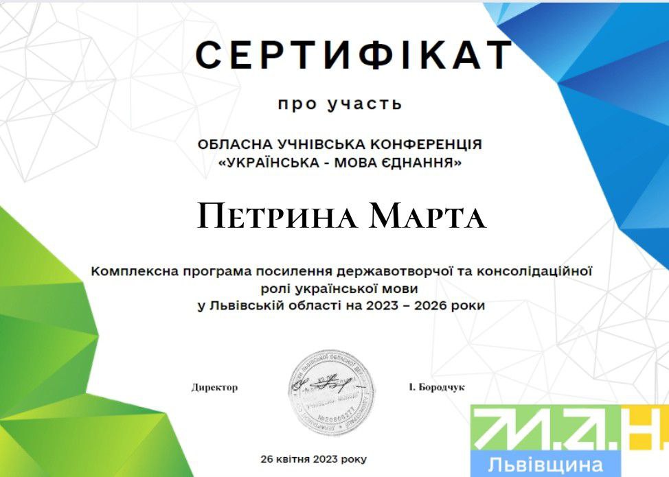 Марта Петрина, здобувачка освіти ІІ курсу ДНЗ "Львівське ВПУ торгівлі та сфери послуг", брала участь в обласній учнівській конференції "Українська - мова єднання".