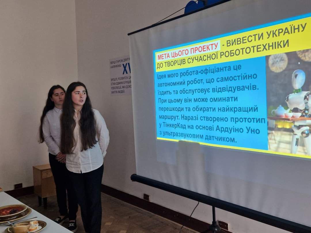 Команда учнівської молоді ДНЗ "Львівське ВПУ торгівлі та сфери послуг" представила два проєкти "Розумна кухня, Робот офіціант" та "Розумна кухня, Робот бармен".