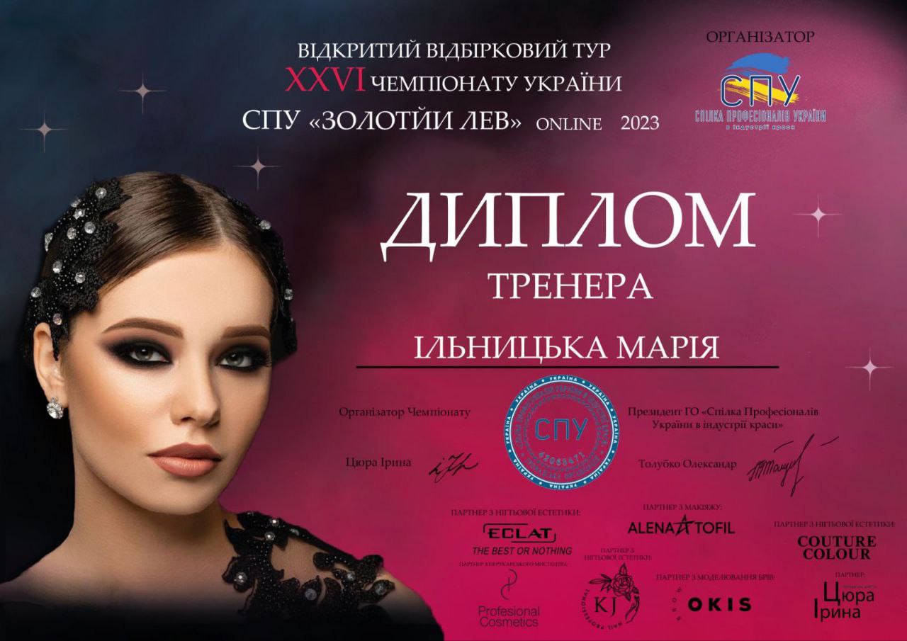 Вітаємо ученицю Олексин Ірину з І місцем у відкритому відбірковому турі XXVI Чемпіонату України СПУ "Золотий Лев" в номінації чоловіча салонна стрижка з укладкою